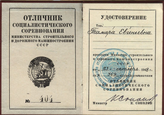 Помимо этого работники активно принимали участие в социалистических соревнованиях. Им вручались специальные знаки, а к ним прилагались удостоверения.