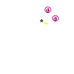 - Діаграма схилень (англ. Declination diagram, North Point diagram) — для налаштування компаса і орієнтації транспортира відносно координатних сіток та ліній меридіанів на карті. На картах часто вказано значення магнітного схилення на відображеній території лише у горизонтальній площині[27], хоча магнітне схилення має також і вертикальну складову (на компасах для компенсації використовують Global Needle System[n]). Значення схилень надаються спеціальними сервісами[29][30][31][32][33][34]. Окрім того, на певних ділянках можуть бути магнітні аномалії, які частково або повністю перешкоджають нормальній роботі магнітних компасів.